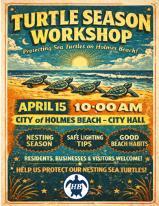 Learn about Nesting Season, Safe Lighting Tips, & Good Beach Habits. Residents, Businesses and Visitors Welcome! Come and learn about how you can help us protect our nesting sea turtles!
